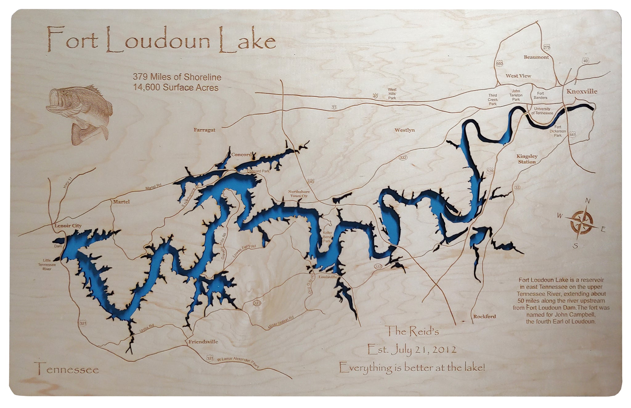 Fort Loudoun Lake, TN Laser Cut Wood Map| Personal Handcrafted