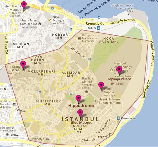 Top Landmarks in Sultanahmet Istanbul map, Top Landmarks in