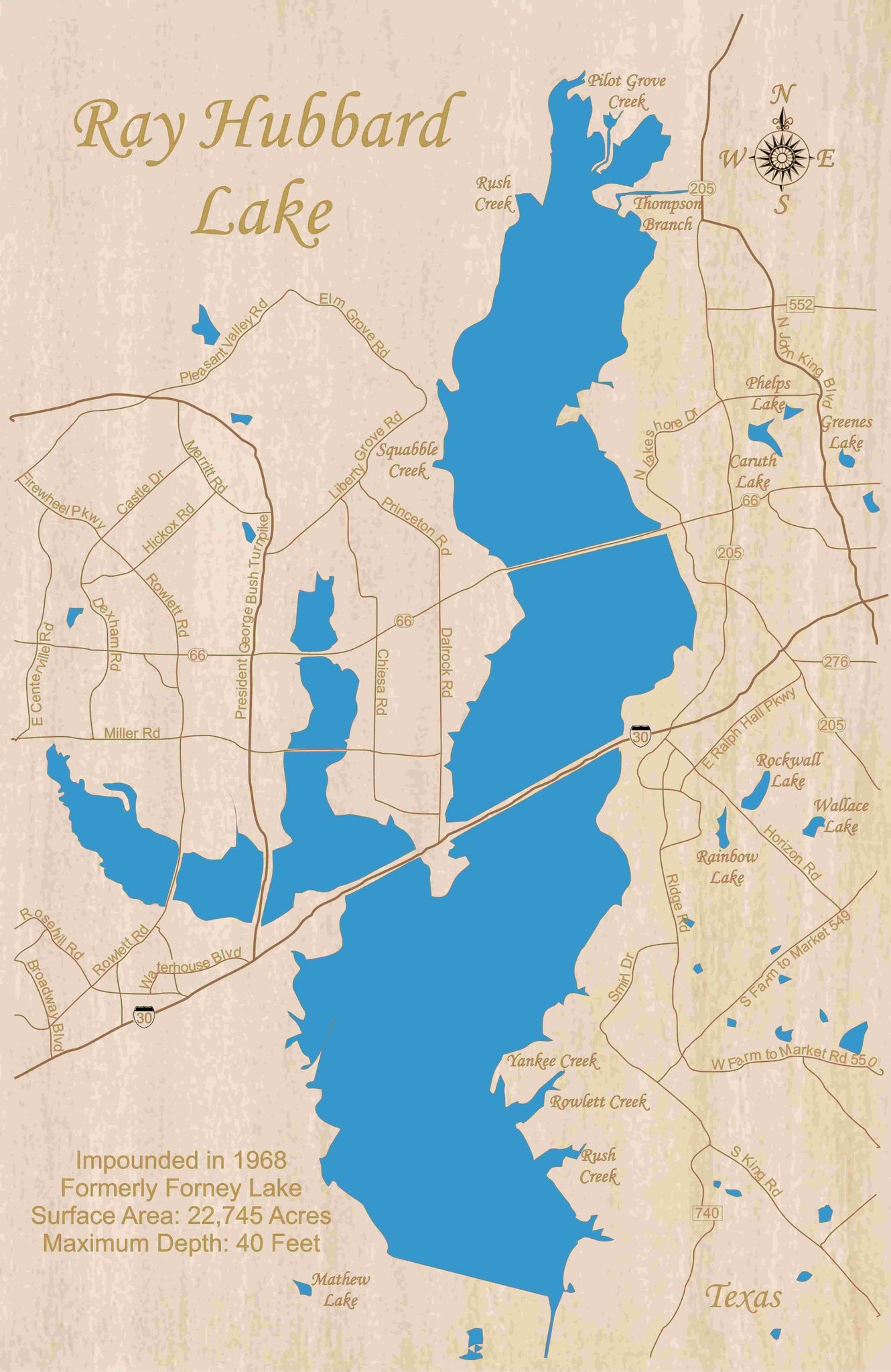 Lake Ray Hubbard, Texas 3D Wooden Map | Topographic Wood Chart